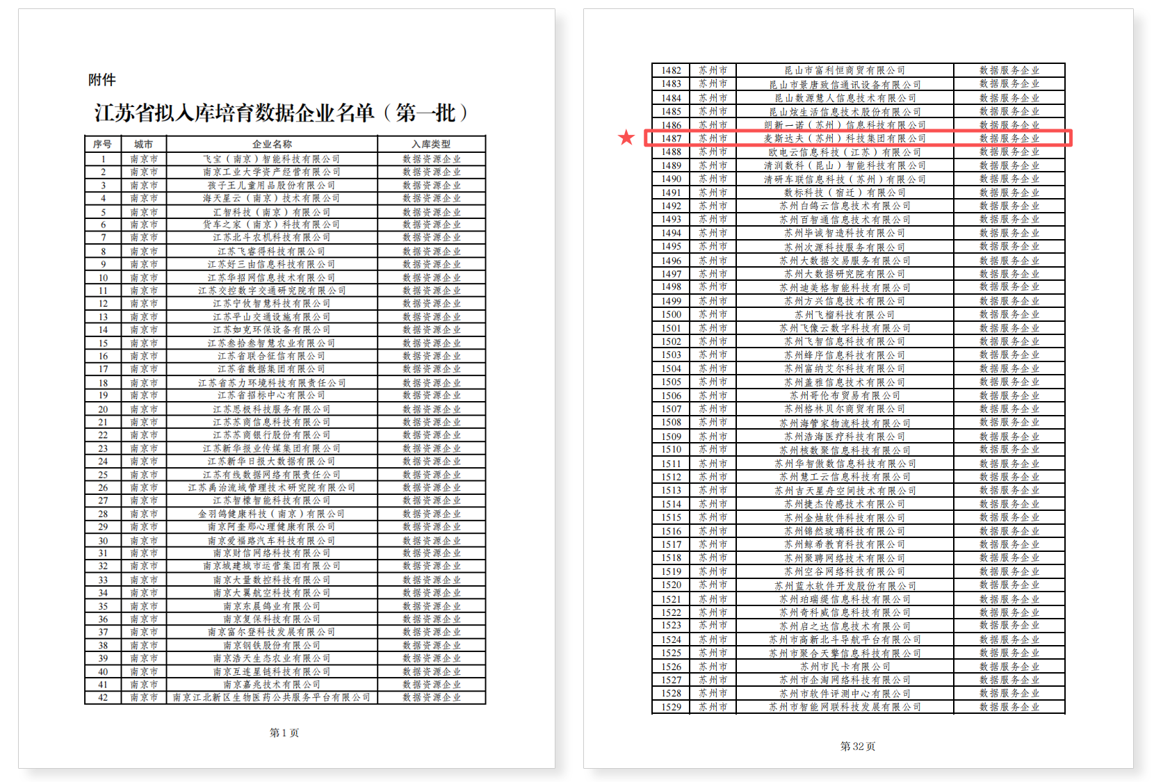 為貫徹落實(shí)江蘇省人民政府關(guān)于培育壯大數(shù)據(jù)產(chǎn)業(yè)有關(guān)工作部署,加快建立數(shù)據(jù)企業(yè)培育庫(kù),繁榮數(shù)據(jù)產(chǎn)業(yè)生態(tài),江蘇省數(shù)據(jù)局組織開(kāi)展了全省首批數(shù)據(jù)企業(yè)入庫(kù)培育工作。經(jīng)過(guò)企業(yè)自主申報(bào)、地市初審、省級(jí)復(fù)審等流程,確定首批3158家入庫(kù)數(shù)據(jù)企業(yè)名單。麥斯達(dá)夫(蘇州)科技集團(tuán)有限公司憑借其在數(shù)據(jù)服務(wù)領(lǐng)域的扎實(shí)積累和創(chuàng)新能力,成功入選。