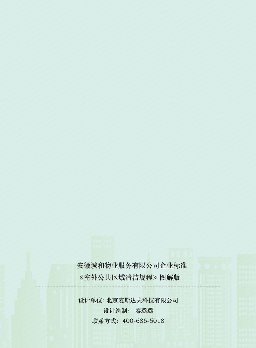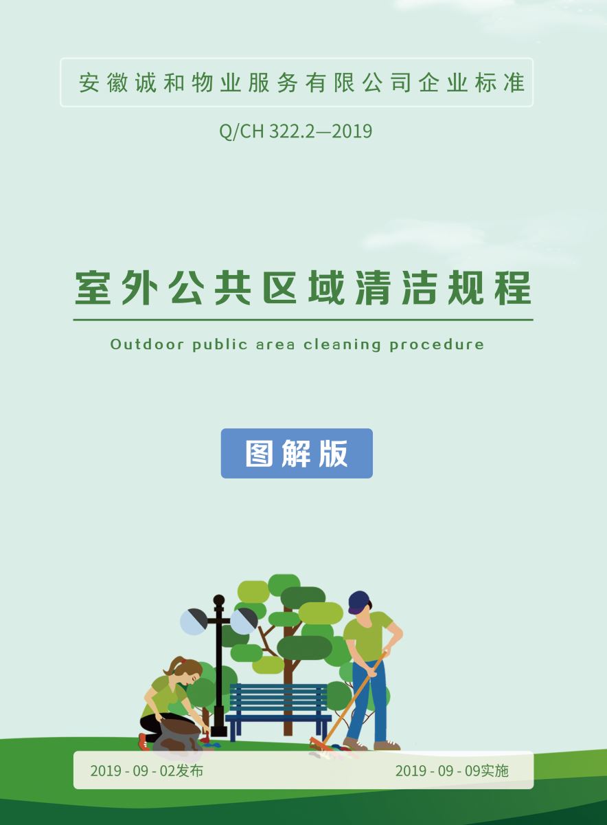 本標準是麥斯達夫根據安徽誠和物業(yè)服務有限公司企業(yè)標準《室外公共區(qū)域清潔規(guī)程》制作的圖解版標準。圖解版標準簡潔明了、通俗易懂,使枯燥的文字表述更加形象直觀。