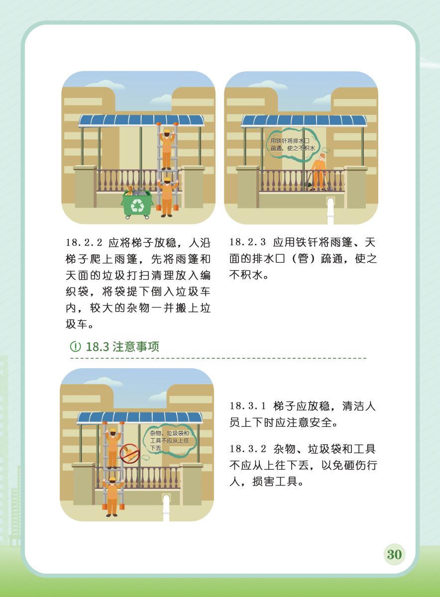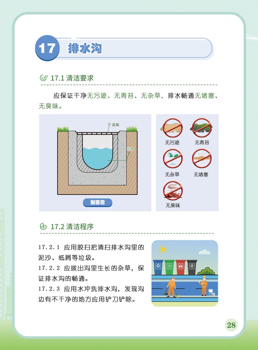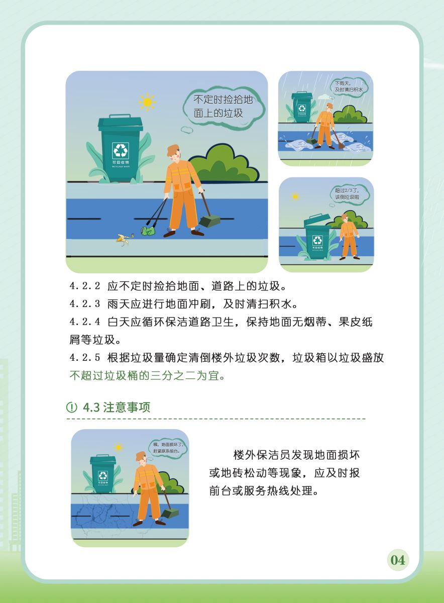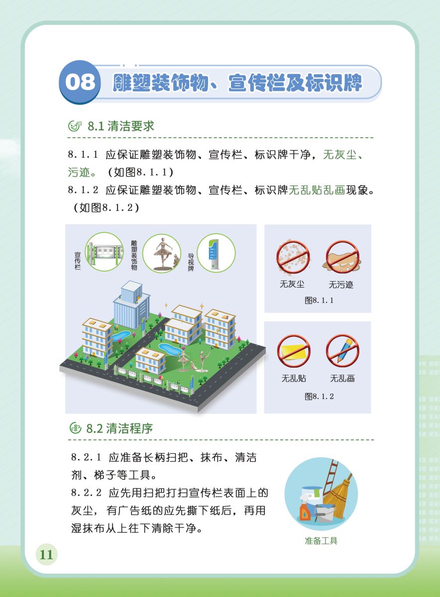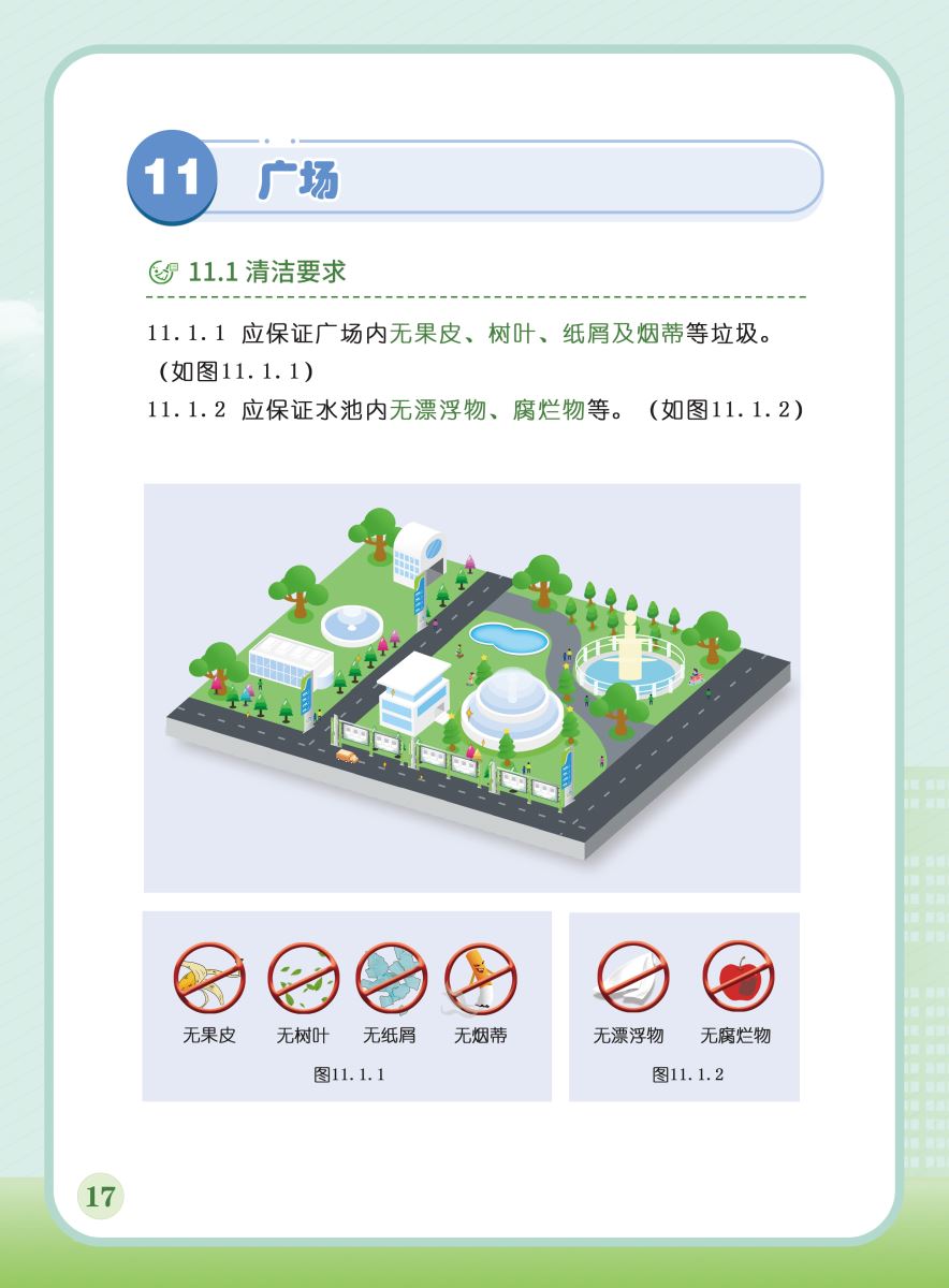 以下展示《室外公共區(qū)域清潔規(guī)程》團體標準圖解版,以供業(yè)內同仁閱覽,不足之處,敬請批評指正。