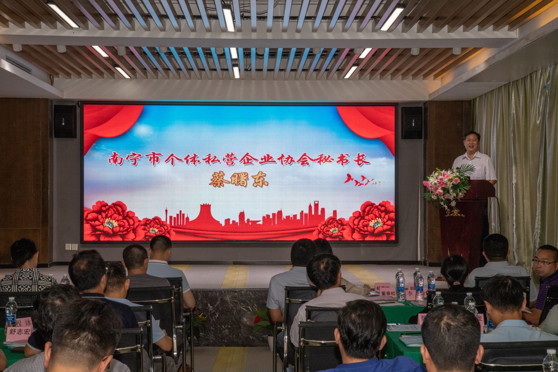 會議開幕環(huán)節(jié),南寧市個(gè)體私營企業(yè)協(xié)會秘書長蔡曙東、廣西麥斯達(dá)夫標(biāo)準(zhǔn)化服務(wù)有限公司總經(jīng)理黃慶旦分別致歡迎辭。