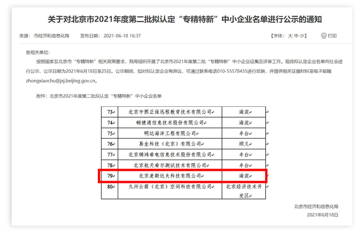 為深入貫徹習(xí)總書記關(guān)于“培育一批‘專精特新’中小企業(yè)”的重要指示精神,財(cái)政部、工業(yè)和信息化部聯(lián)合印發(fā)了《關(guān)于支持“專精特新”中小企業(yè)高質(zhì)量發(fā)展的通知》,根據(jù)《通知》,將通過中央財(cái)政資金引導(dǎo),促進(jìn)上下聯(lián)動(dòng),將培優(yōu)中小企業(yè)與做強(qiáng)產(chǎn)業(yè)相結(jié)合,加快培育一批專注于細(xì)分市場、聚焦主業(yè)、創(chuàng)新能力強(qiáng)、成長性好的專精特新“小巨人”企業(yè),推動(dòng)提升專精特新“小巨人”企業(yè)數(shù)量和質(zhì)量,助力實(shí)體經(jīng)濟(jì)做強(qiáng)做優(yōu)。北京麥斯達(dá)夫科技有限公司通過多年努力,于近日成功入選北京市第二批 “專精特新”中小企業(yè)名單。