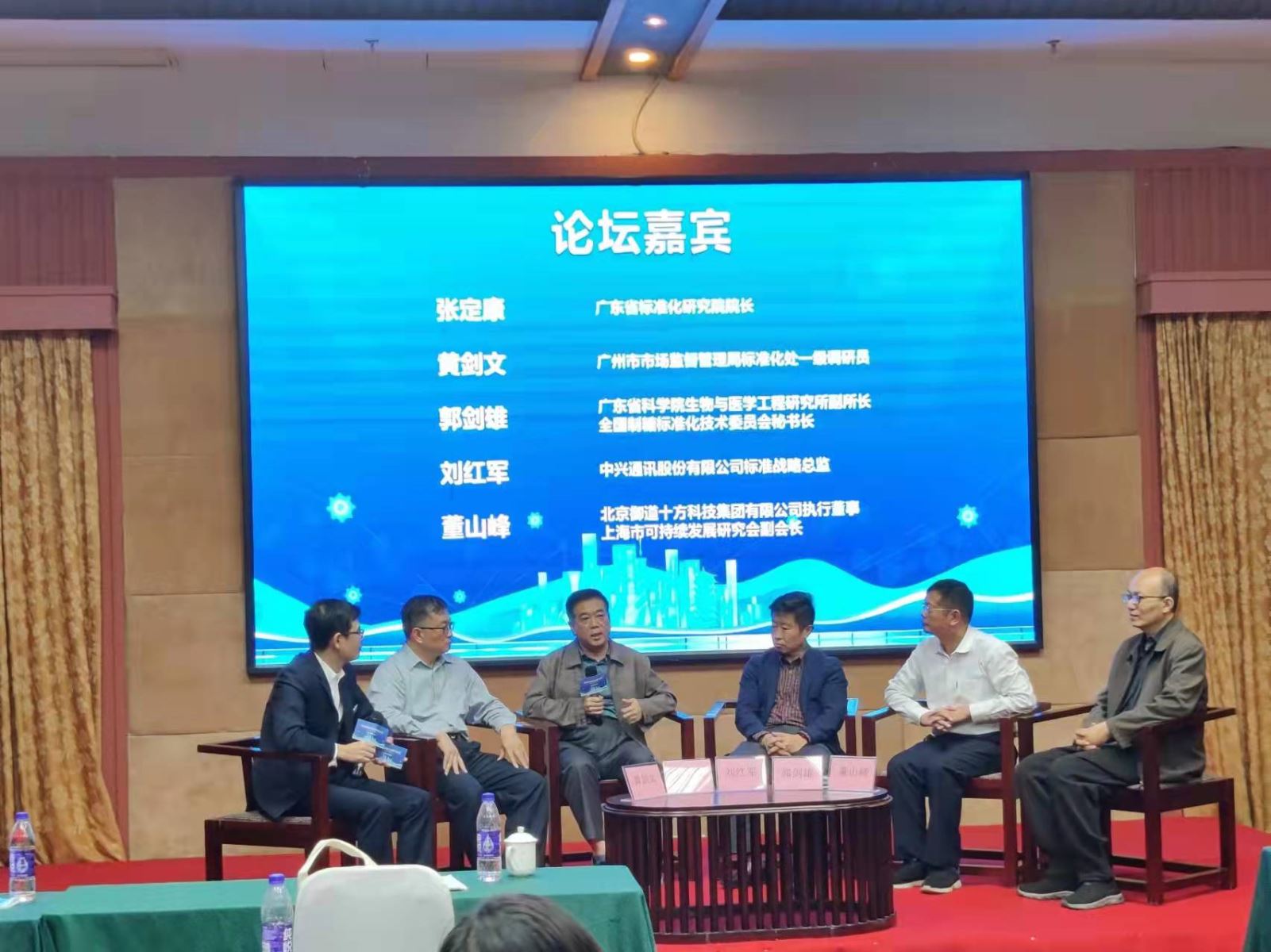 圓桌討論環(huán)節(jié)由廣州市市場監(jiān)督管理局標(biāo)準(zhǔn)化處一級調(diào)研員黃劍文、廣東省標(biāo)準(zhǔn)化研究院院長張定康、廣東省科學(xué)院生物與醫(yī)學(xué)工程研究所副所長兼全國制糖標(biāo)準(zhǔn)化技術(shù)委員會秘書長郭劍雄、中興通訊股份有限公司標(biāo)準(zhǔn)戰(zhàn)略總監(jiān)劉紅軍及北京御道十方科技集團(tuán)有限公司執(zhí)行董事董山峰圍繞政策、城市可持續(xù)發(fā)展、企業(yè)創(chuàng)新、灣區(qū)標(biāo)準(zhǔn)等維度,開展標(biāo)準(zhǔn)化生態(tài)討論。