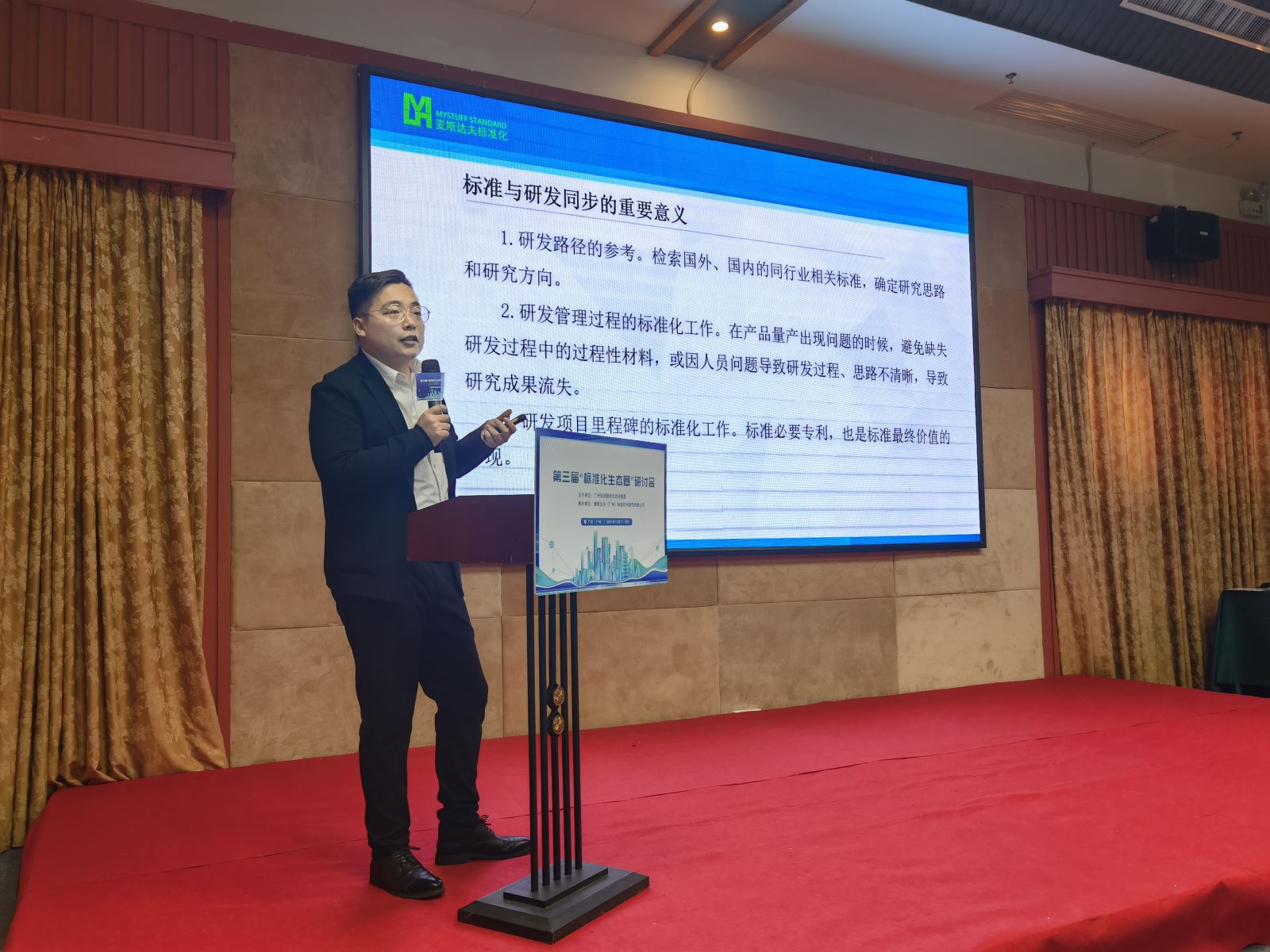 麥斯達(dá)夫市場總監(jiān)王釗柱介紹了“標(biāo)準(zhǔn)與研發(fā)同步”。