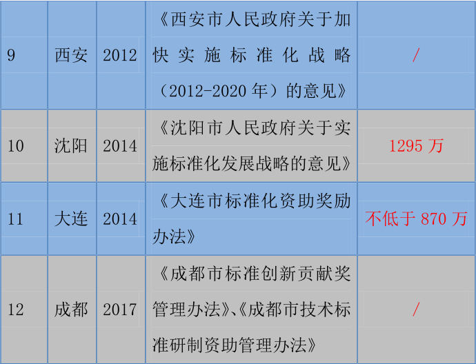 地方政府標(biāo)準(zhǔn)化獎(jiǎng)勵(lì)政策一覽