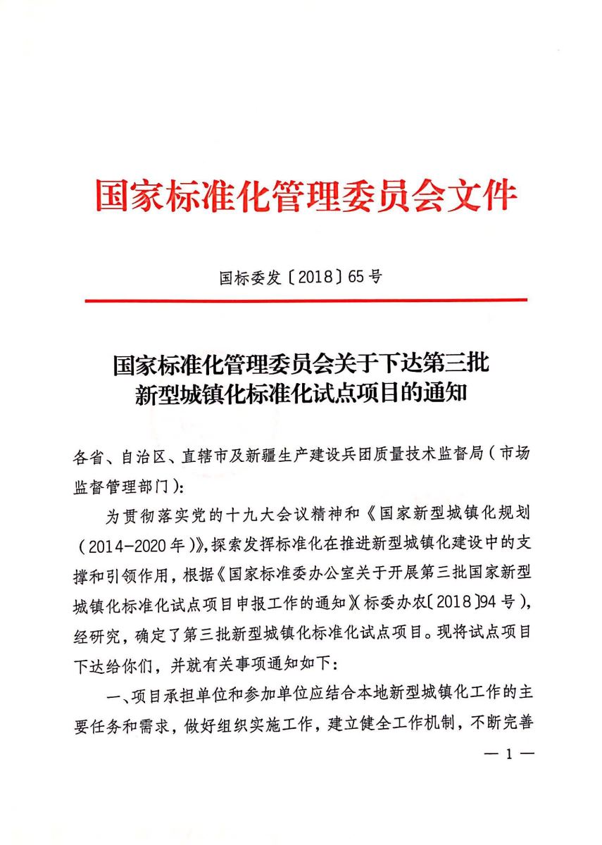 國家標準化管理委員會關于下達第三批新型城鎮(zhèn)化標準化試點項目的通知