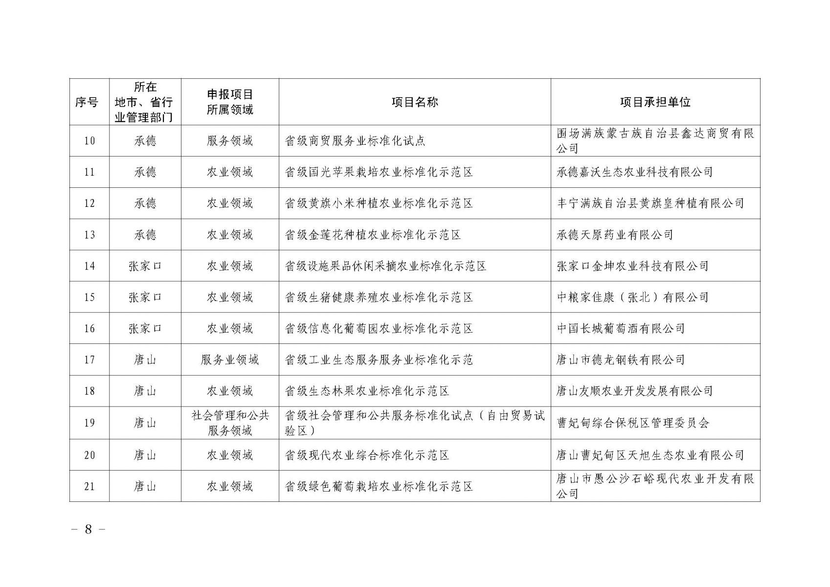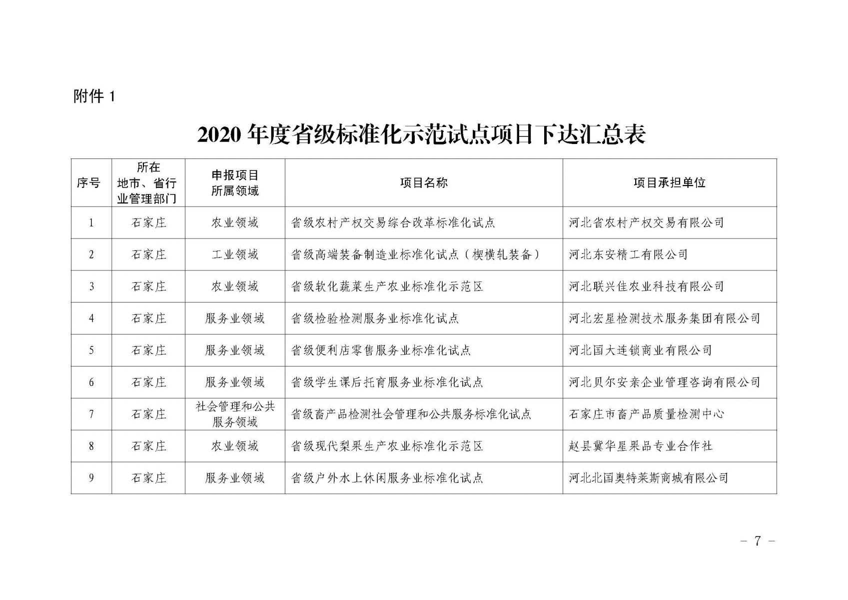 河北省市場監(jiān)督管理局關于下達2020年度省級標準化示范試點項目的通知
