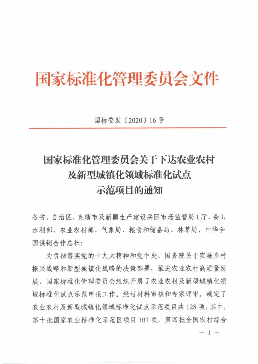 國(guó)家標(biāo)準(zhǔn)化管理委員會(huì)關(guān)于下達(dá)農(nóng)業(yè)農(nóng)村及新型城鎮(zhèn)化領(lǐng)域標(biāo)準(zhǔn)化試點(diǎn)示范項(xiàng)目的通知