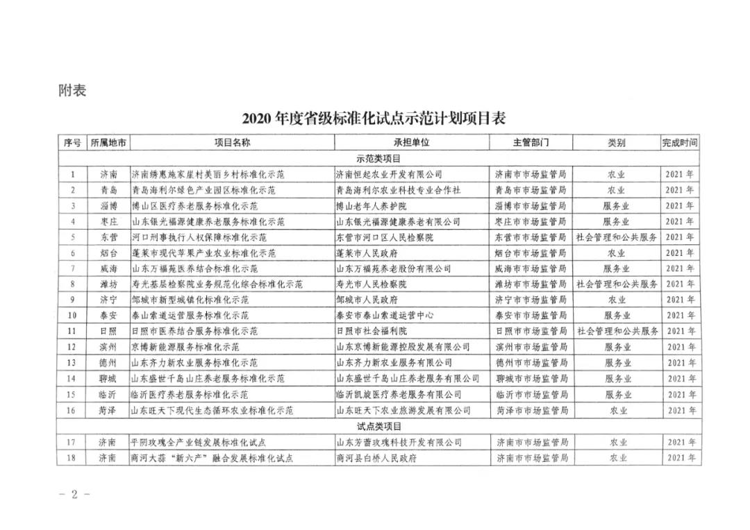 山東省市場監(jiān)督管理局關(guān)于印發(fā)2020年度省級(jí)標(biāo)準(zhǔn)化試點(diǎn)示范計(jì)劃項(xiàng)目的通知