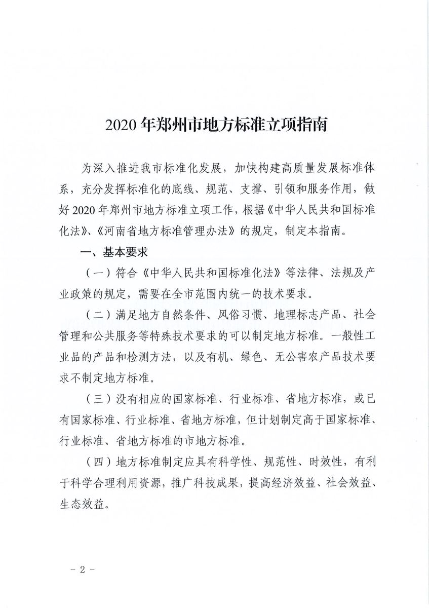 2020年鄭州市地方標(biāo)準(zhǔn)立項(xiàng)指南