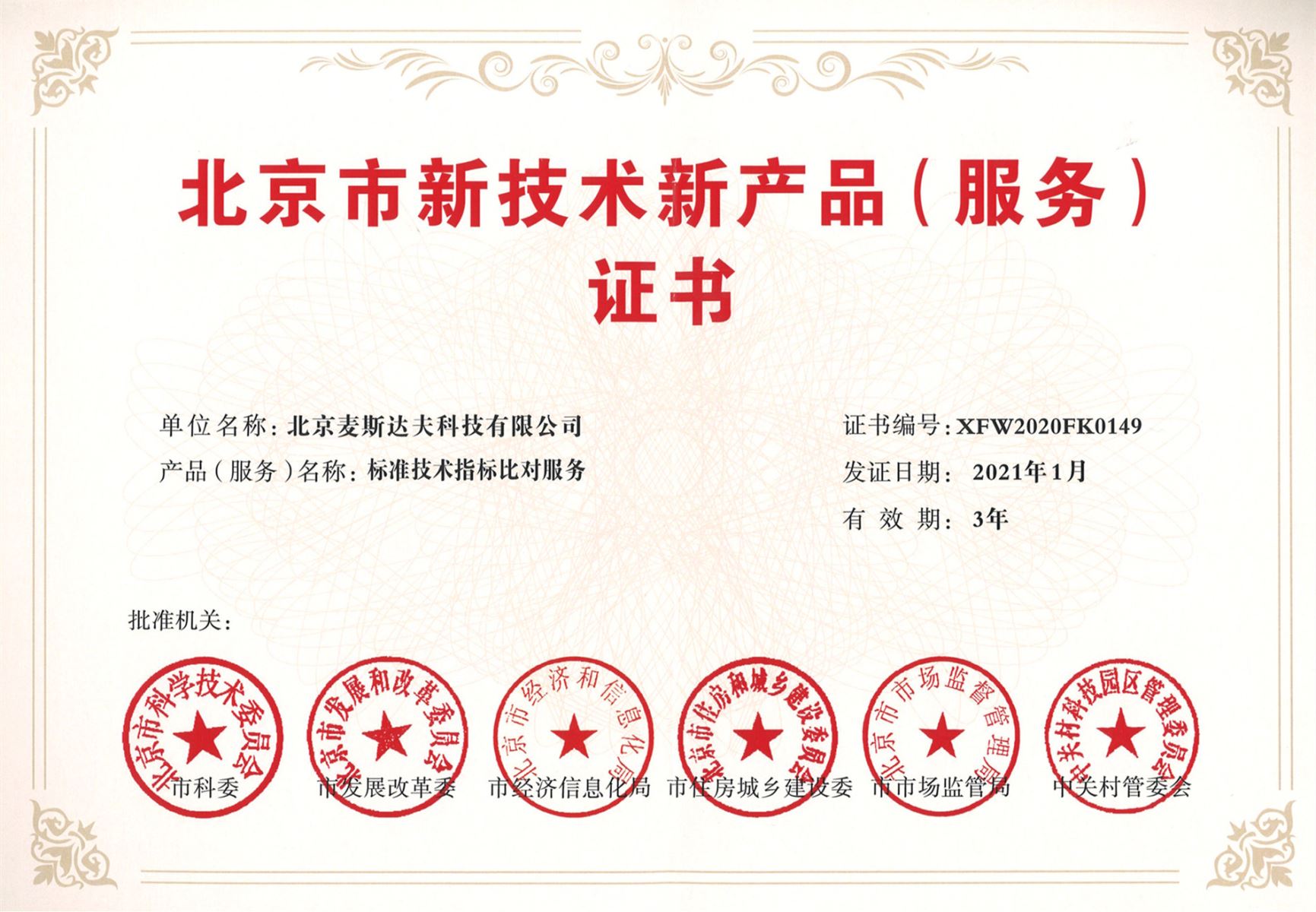 根據(jù)《北京市新技術(shù)新產(chǎn)品(服務(wù))認(rèn)定管理辦法》的規(guī)定,經(jīng)專(zhuān)家評(píng)審及認(rèn)定小組審核,北京市科學(xué)技術(shù)委員會(huì)、北京市發(fā)展和改革委員會(huì)、北京市經(jīng)濟(jì)和信息化局、北京市住房和城鄉(xiāng)建設(shè)委員會(huì)、北京市市場(chǎng)監(jiān)督管理局、中關(guān)村科技園區(qū)管理委員會(huì)共同提出新技術(shù)新產(chǎn)品(服務(wù))認(rèn)定名單,并核發(fā)《北京市新技術(shù)新產(chǎn)品(服務(wù))證書(shū)》。